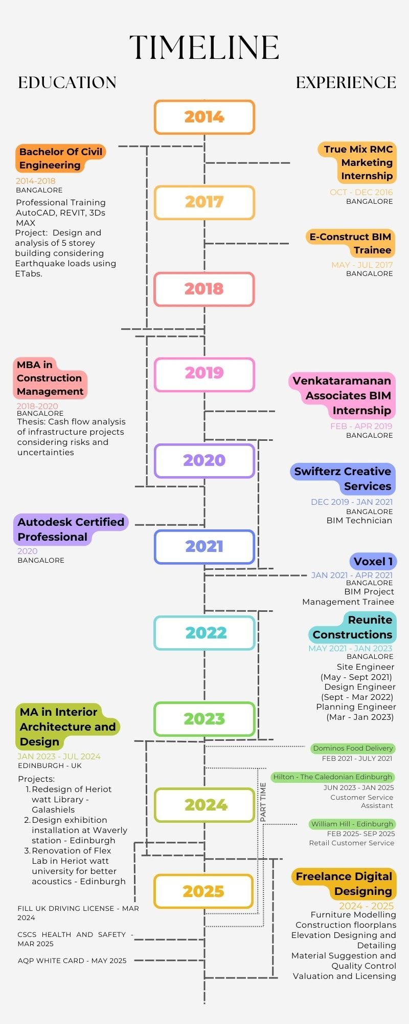 I started my career with a solid grounding in civil engineering, building a deep understanding of structural systems and construction processes. Over time, I expanded into interior architecture and design, developing a keen eye for spatial detailing and multidisciplinary coordination. Today, I specialise in BIM-driven project delivery, integrating design intent, engineering precision, and on-site execution through intelligent digital modelling. My journey reflects a continuous evolution — from traditional engineering to cutting-edge digital construction, delivering smarter, clash-free, and efficient projects.